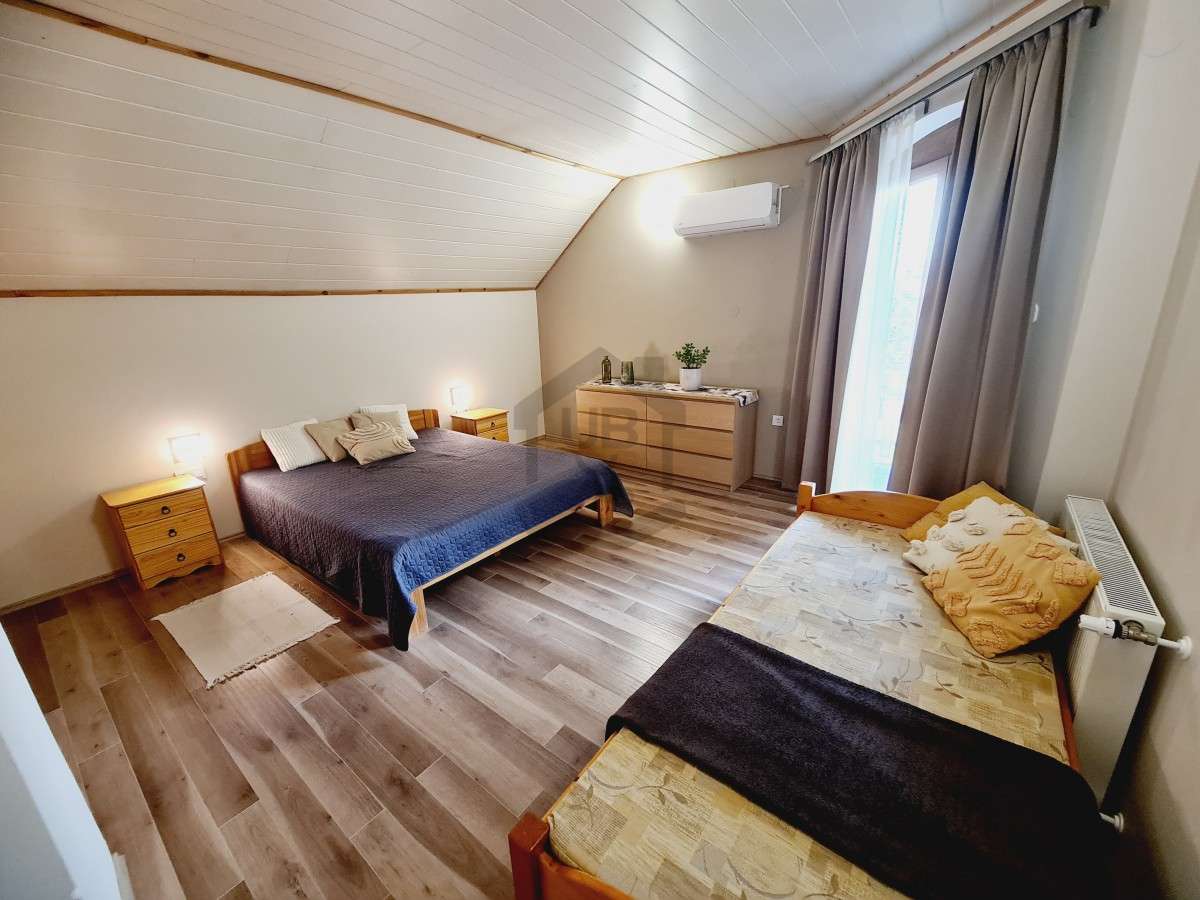 A házban három különálló hálószoba, egy napfényes nappali, jól felszerelt konyha és két fürdőszoba biztosítja a kényelmet akár 6–7 fő számára.